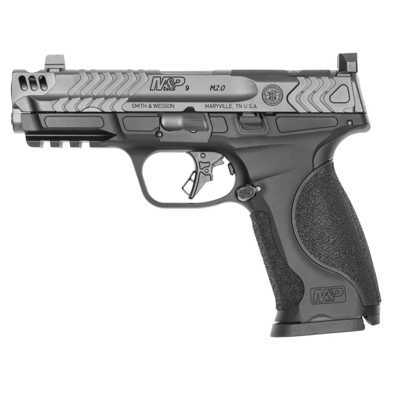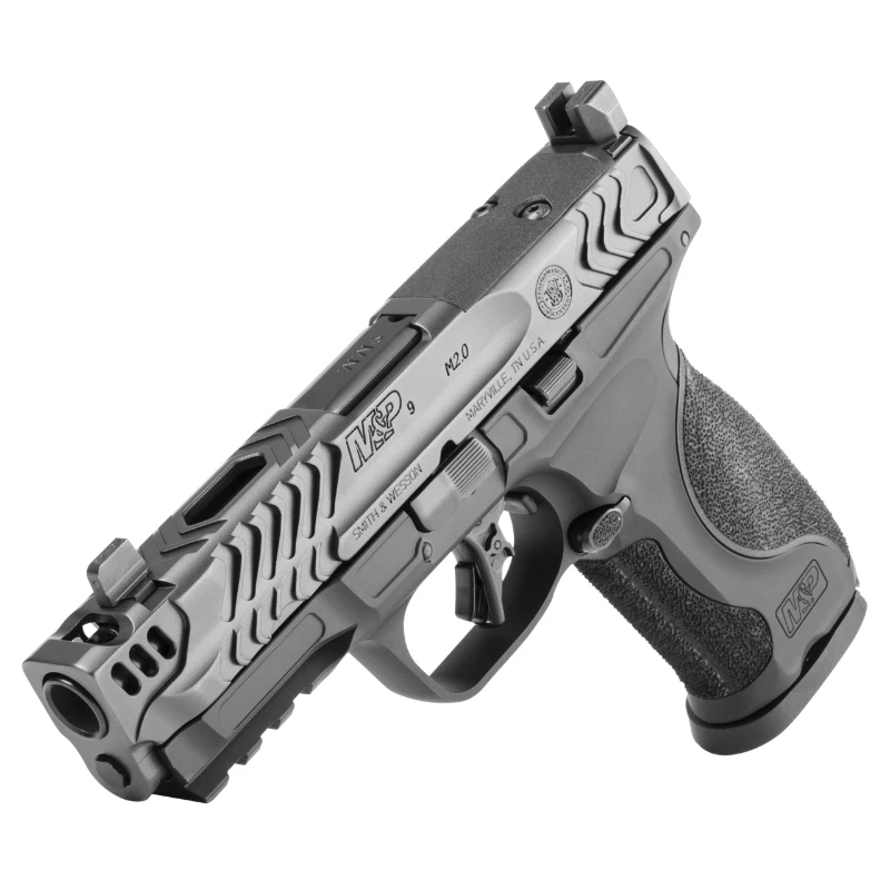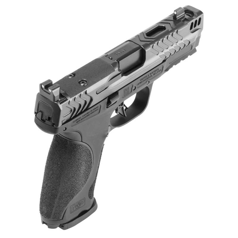 Pistola de alto desempenho com armação em alumínio e compensador integrado no cano (Carry Comp), projetada para tiro rápido e preciso.